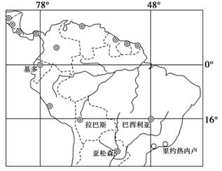 5、单选题 读经纬网图,某日巴西利亚的昼长为12小时40分。回答下列各题。