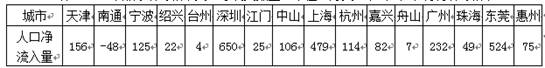 3、单选题  读“2007年部分沿海城市人口净流人数量(单位:万人)表”,表中说明沿海城市