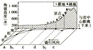 2、单选题 读“某特大城市及其周边地区各类土地的付地租能力与该地区地形剖面示意图”。回答题。