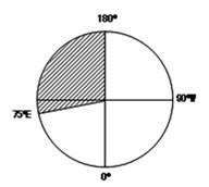 本题解析:日期界线一条是日界线,另一条是0时所在的经线。要计算日期范围关键是寻找0时所在经线。由北京时间2013年8月25日9:00,可推算出0时所在的经线为15?W。因此日期为2013年8月25日范围为15?W向东到180?。故大于一半。