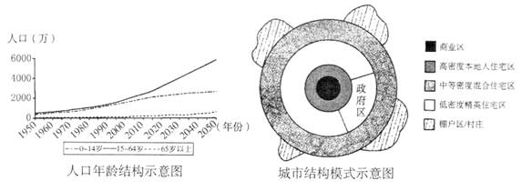 (4)存在问题:城市工业发展缓慢,城市化不随工业化和经济的进程而发展;大量农村过剩劳动力进入城市,失业率高;社会治安问题严重;贫民区集中,社会矛盾严重。(每点2分,共4分,多答不给分,答案合理,可酌情给分,但不能超过本小题总分)