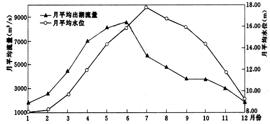 1、单选题 位于长江中下游地区的鄱阳湖是我国面积最大的淡水湖,下图为湖口水文站月平均水位与月平均流量对比图。读图回答以下问题。