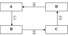 【小题4】由图中可判断,D为岩浆岩,三大类岩石之一转化为岩浆的过程为高温熔化。