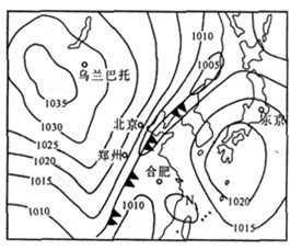 4、单选题 读亚洲局部区域某时刻海平面等压线分布图(单位:hPa)(如下图),回答下列各题。