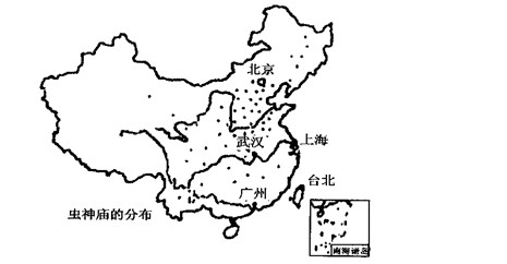 5、单选题 读“中国虫神庙(明代)分布示意图”,回答1—2题