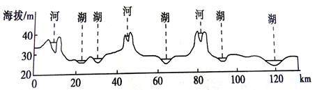 小题2:该地河、湖众多,地势低平(海拔在20?m~40?m之间),因此,可判断该地可能为我国东部地势第三阶梯,江河下游地区,如:长江中下游平原,其形成主要由流水沉积作用而成。正确答案选B。