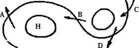 3、单选题  读“北半球等压线分布图”,H代表高压,A、B、C、D四处风向箭头画法正确的是(   )