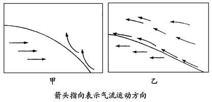 D.甲过境时气温升高 , 气压降低 , 出现雨雪天气