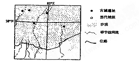 小题1:根据图示:该地位于塔里木盆地,水资源短缺,主要为荒漠,农业分布在绿洲地区。所以本题选择C选项。