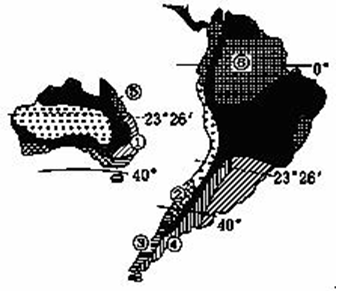 1、综合题 下图是两大洲气候区分布示意图。读图,回答下列问题。(14分)