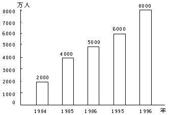 3、综合题 读“1984年到1995年我国流动人口数量的变动” 图,回答下列问题。