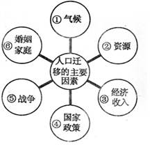 2、单选题 图为影响人口迁移的主要因素示意图,读图完成问题。