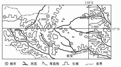 小题1:由图形的经纬网110?E,37?N附近,应为内蒙古高原与黄土高原交界处,图中延安也可知。因此图中长城处于我国西北地区,从题干自然原因分析,主要应是风力侵蚀为主。该地区降水少,流水侵蚀弱,不处于地震多发地,地震较少。农民活动是人为原因。