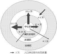 3、单选题 读“2005年我国东部沿海某市各圈层人口净迁移模式图”,完成下列问题。