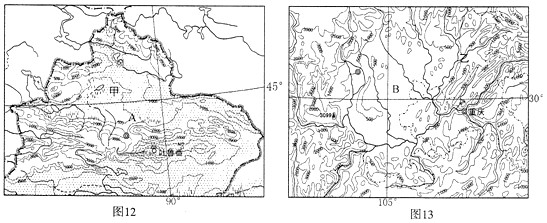 材料一:图l2、图l3为我国两大地形区图。