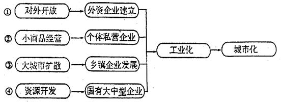 1、单选题 下图中①、②、③、④中,能代表珠三角和东北地区工业化与城市化模式的是