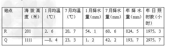 材料二?Q、R两地气候资料对比
