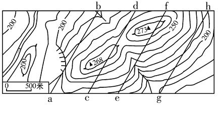 3、单选题  读北半球某地等高线示意图,回答问题。