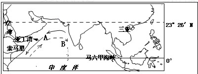 (4)图中正确表示该季节洋流流向的是____(A或B),其成因是______________________________。