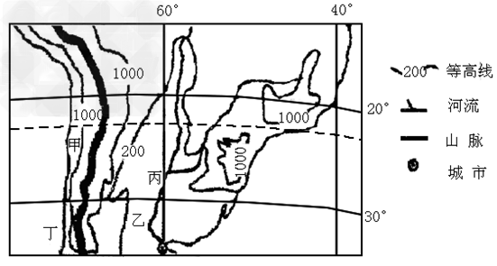 C.丙河流域地势起伏不大,水能资源不丰富,1月处于丰水期