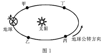 小题1:当地球位于丙位置时,太阳直射点位于赤道与北回归线之间,且向北移动,此时北半球各地昼长夜短且昼逐渐增长。故选B项。