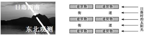 小题1:观测“卧佛含丹”的奇观,应在“佛头”的什么方位,及曼哈顿“悬日”街道的走向