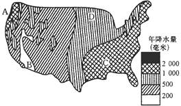 5、单选题 读“美国降水分布图”,回答第题。