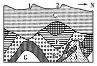 5、单选题 该图为某地地质剖面图,其中C为沉积物,B、F、G为沉积岩,A、D为不同时期的岩浆岩,E为变质岩,据此回答问题。