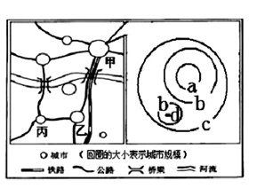 5、单选题 读某地区城市分布及图中甲城市地租等值线示意图,完成1~2题。
