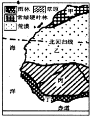 1.图中甲、乙、丙、丁四区域2.实时获取丙区域植被生长状况的信息,所应用的现代技术主要是