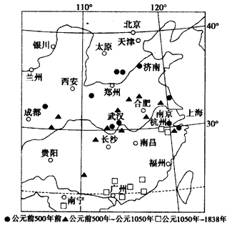 3、单选题 对野象生活习性研究表明,野象喜欢生活在温暖湿润的森林环境。下图为中国历史时期野象活动地点分布图。读图回答1~2题。