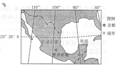 小题2:当地位于北半球低纬地区,受东北信风影响,故坎昆位于东北信风的迎风坡,降水量丰富,而巴雅尔塔位于东北信风的背风坡,降水量少。