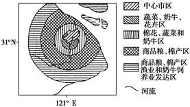 1、单选题 下图为某市城郊农业分布模式图,读后回答题。