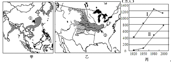(4)丙图中的Ⅰ、Ⅱ两人口变化曲线,能反映乙图P城城市人口变化过程的是?线,出现这种变化的主要原因是?、?等。