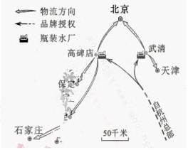 3、单选题 某品牌企业在京津冀地区建有饮用瓶装水厂。读图,回答下列各题。