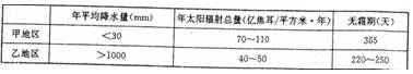 (1)甲地区的优势经济作物是____________________ ,结合材料二和所学知识说明其发展该经济作物的优势自然条件。(6分)