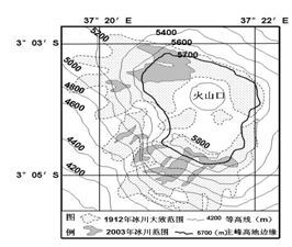 4、单选题 非洲第一高峰乞力马扎罗山海拔5895米,距赤道仅300千米,峰顶“雪冠”正面临缩小趋势。读图,回答下列各题。