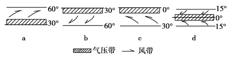 5、单选题 当我国各地白昼时间最短时,下列四幅图所示气压带、风带分布正确的是( )