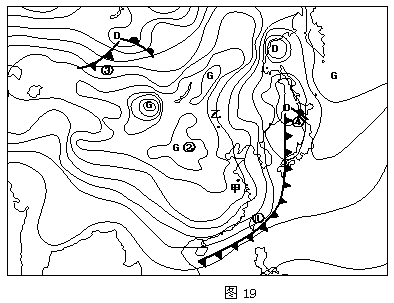 材料二:2008年12月5日6时亚洲东部地区海平面气压分布图(图19)