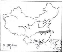 本题解析:我国煤炭主要分布在北方,如东北、华北等地;水能分布在西南、华南等地。A是将山西等省煤炭转换成为的火电输送至华北地区的北线工程,B线是三峡水电外输的中线工程,C是将红水河流域(珠江上游)水电输往珠三角地区的南线工程。京津唐、沪宁杭及珠三角地区缺少常规能源,需要大量输入。这些输电工程可以为输入地提供能源、保障生产;可以将输出地资源优势转化为经济优势。