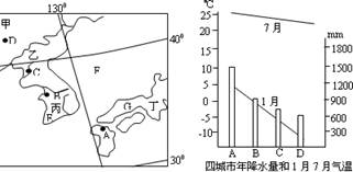 (1)E位于朝鲜半岛南部。故判断为亚热带季风气候。F位于朝鲜半岛与日本群岛之间,判断为日本海。