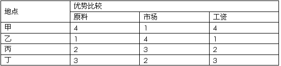 5、单选题 下表是我国四个地区建厂的区位优势比较(数值越大,优势越明显)。据此回答问题。