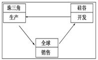 1.图中产、销、研各环节联系的纽带是2.此类工业将产地放在珠三角的主要原因是3.该生产活动涉及的人类活动地域联系方式不包括
