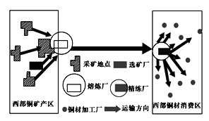 1.据图分析美国铜矿熔炼厂和精炼厂分别属于2.大量铜材加工厂布局在精炼厂附近,有利于