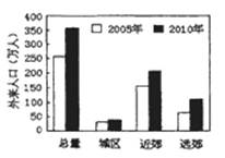 1、单选题 读我国东部某城市2005~2010年“外来人口流向调查统计图”,回答下题。