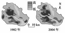 小题2:根据图示变化看出,高温区增大,说明绿地在减少,建筑用地在增加。而BC选