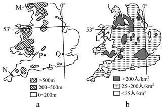 3、单选题 下图示意某国部分地区的地形(a)和人口密度(b)。读图,完成题。