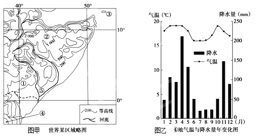 5、综合题 读图甲和图乙,完成下列问题。(14分)