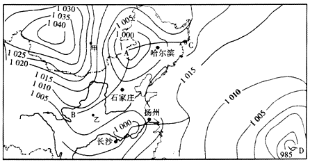 3、综合题 下图为2012年4月某日我国的地面天气图(单位:hPa),读图回答下列问题。(10分)