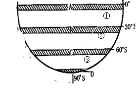 (3))①东南信风; ②中纬西风(盛行西风);③极地东风(极地东南风)